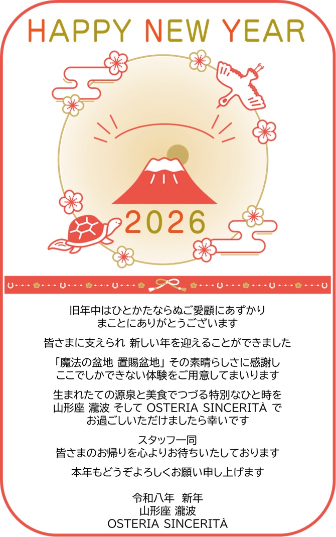山形座 瀧波では、生まれたて十割源泉の温泉と山形の豊かな食をご用意しております。