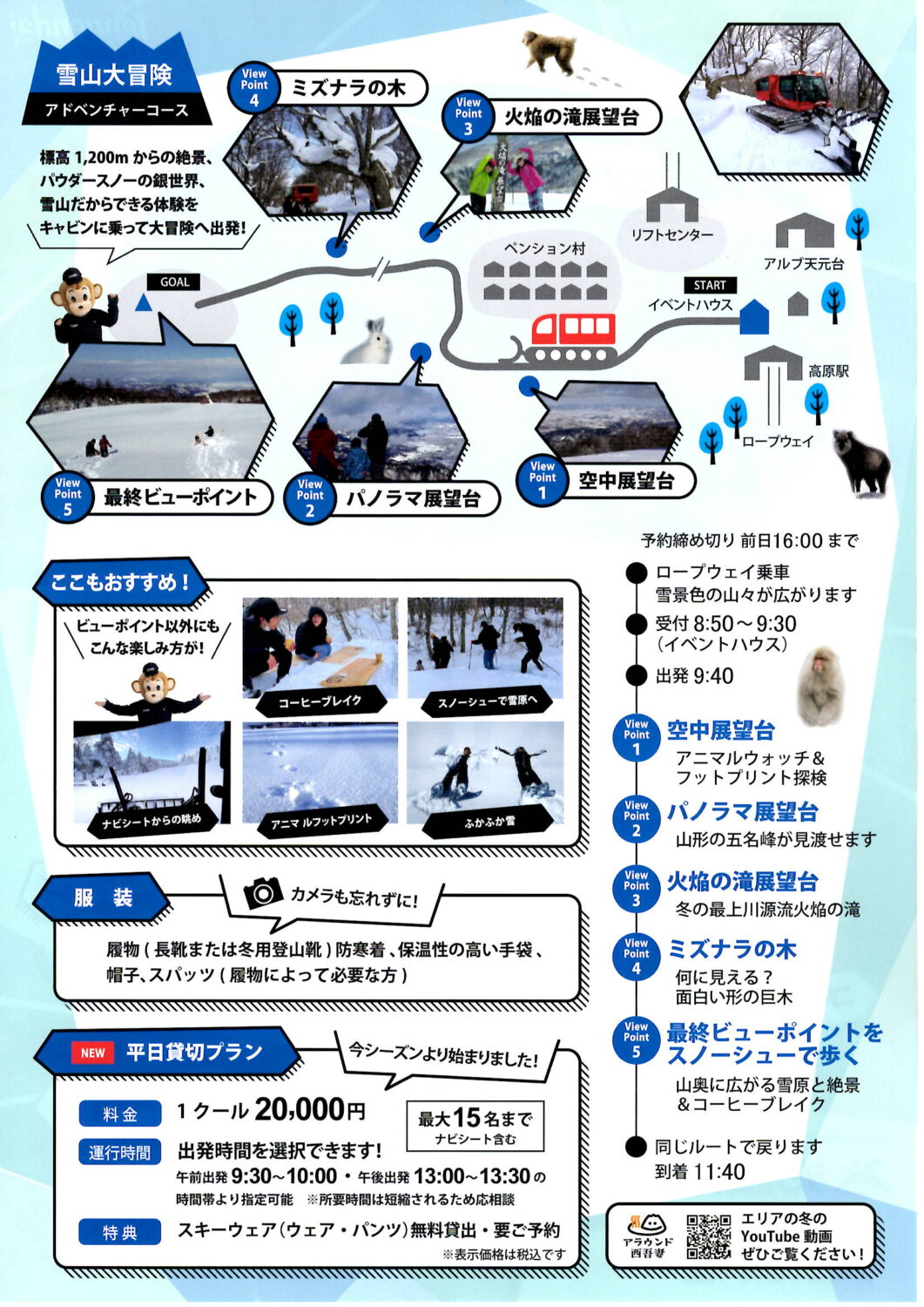 【周辺観光】天元台高原の銀世界へ圧雪車で行く!雪山大冒険|12月20日(土)~4月5日(日)