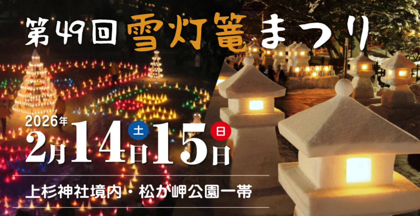 山形を代表する、雪と灯りの幻想的な冬のイベント『上杉雪灯篭まつり』が今年も開催されます。